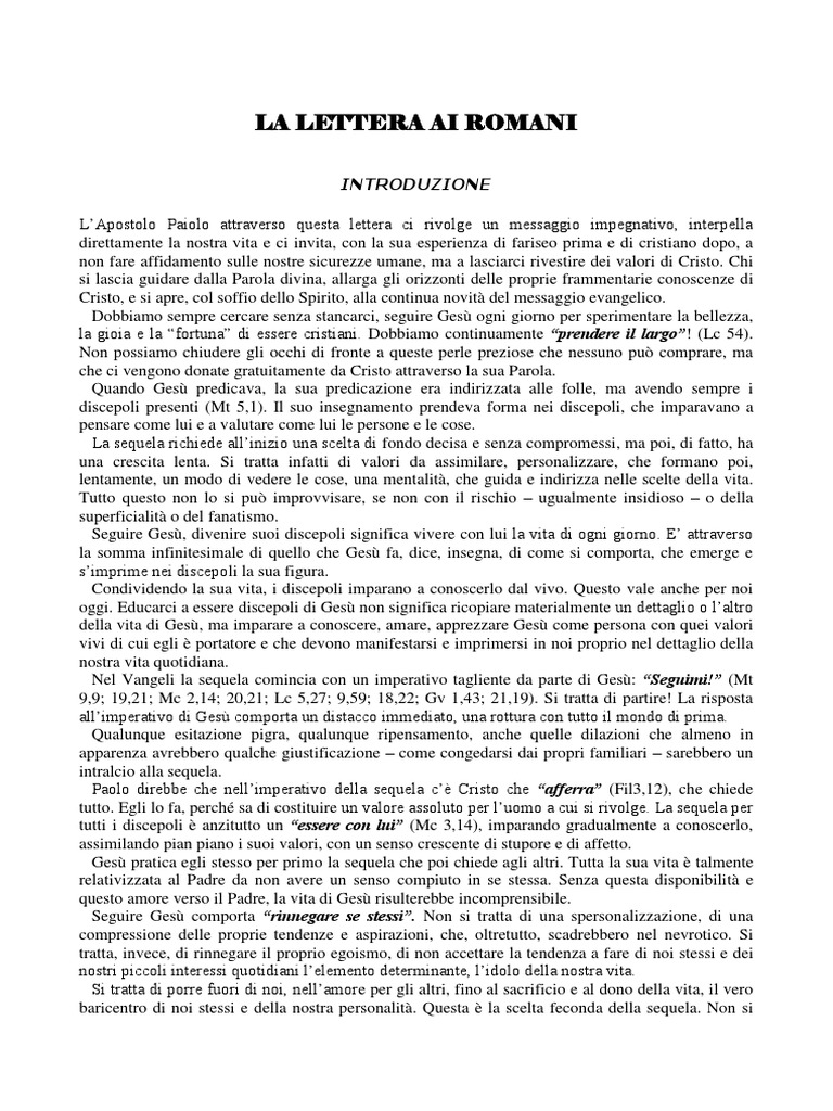 (PDF) LA LETTERA AI ROMANI | Gianni ... - Academia.edu Esegesi della lettera di Paolo ai romani. Esegesi della lettera di Paolo ai romani . × Close Log In. Log in with Facebook Log in with Google. or. Email ... Full PDF Package Download Full PDF Package. This Paper. A short summary of this paper. 36 Full PDFs related to this paper. Read Paper.