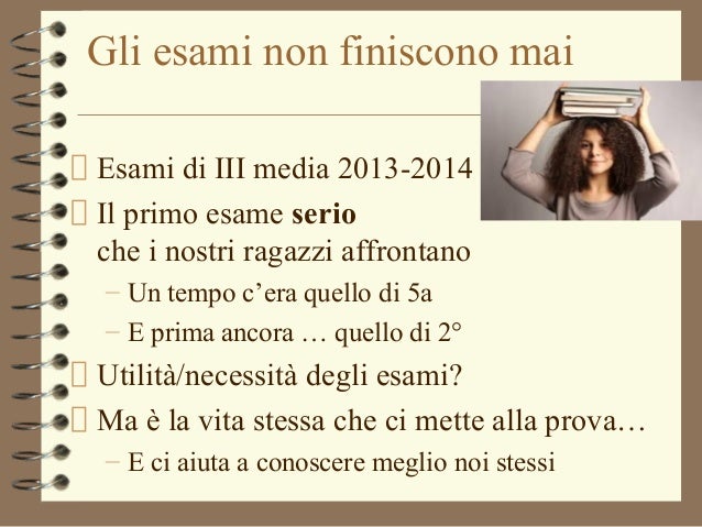 Esami terza media: voto ammissione può essere meno di 6 ... Tra il termine delle lezioni e il 30 giugno 2022 si svolgono gli esami di terza media. Quest'anno si torna alle prove scritte, poi il colloquio. Il Ministero ha predisposto delle slide nelle ...