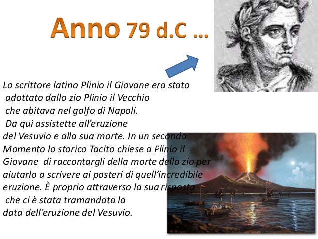 Lettere di Plinio il Giovane - Vesuvio - Libero.it Seconda lettera di Plinio il Giovane a Tacito Caro Tacito, tu dici che, spinto dalla lettera che io ti scrissi, a tua richiesta circa la morte di mio zio, desideri sapere (ciò che io avevo cominciato e poi interrotto) non solo i timori, ma anche quali avvenimenti abbia io sofferto rimanendo a Miseno. [Eruzione del Vesuvio e morte di Plinio il Vecchio a Stabiae nel 79 d. C.] PLINIO IL GIOVANE. Lettere (106-107 c.) * LIBRO SESTO. LETTERA SEDICESIMA [Eruzione del Vesuvio e morte di Plinio il Vecchio a Stabiae nel 79 d. C.] TESTO C. Plinius Tacito suo s. Petis ut tibi avunculi mei exitum scribam, quo verius tradere posteris possis. Gratias ago; nam video morti eius si celebretur a te immortalem gloriam esse propositam. Lettera di Plinio il giovane a Tacito sull'eruzione del Vesuvio del 79 d.C. Lettera di Plinio il giovane a Tacito sull'eruzione del Vesuvio del 79 d.C. "Mi chiedi che io ti esponga la morte di mio zio, per poterla tramandare con una maggiore obiettività ai posteri. Te ne ringrazio, in quanto sono sicuro che, se sarà celebrata da te, la sua morte sarà destinata ad una gloria immortale. Vesuvio - Eruzione Del ... - Anno 79 D.c. - Storiologia.it Si ha di questo dramma una precisa descrizione da parte di PLINIO il GIOVANE in una lettera mandata a Tacito. Plinio era a Capo Miseno con lo zio Plinio Il Vecchio; alla prima piccola eruzione quest'ultimo salpato con una barca, spinto dalla curiosità scientifica volle avvicinarsi alla costa e incurante dei sassi e lapilli che piovevano dal ...