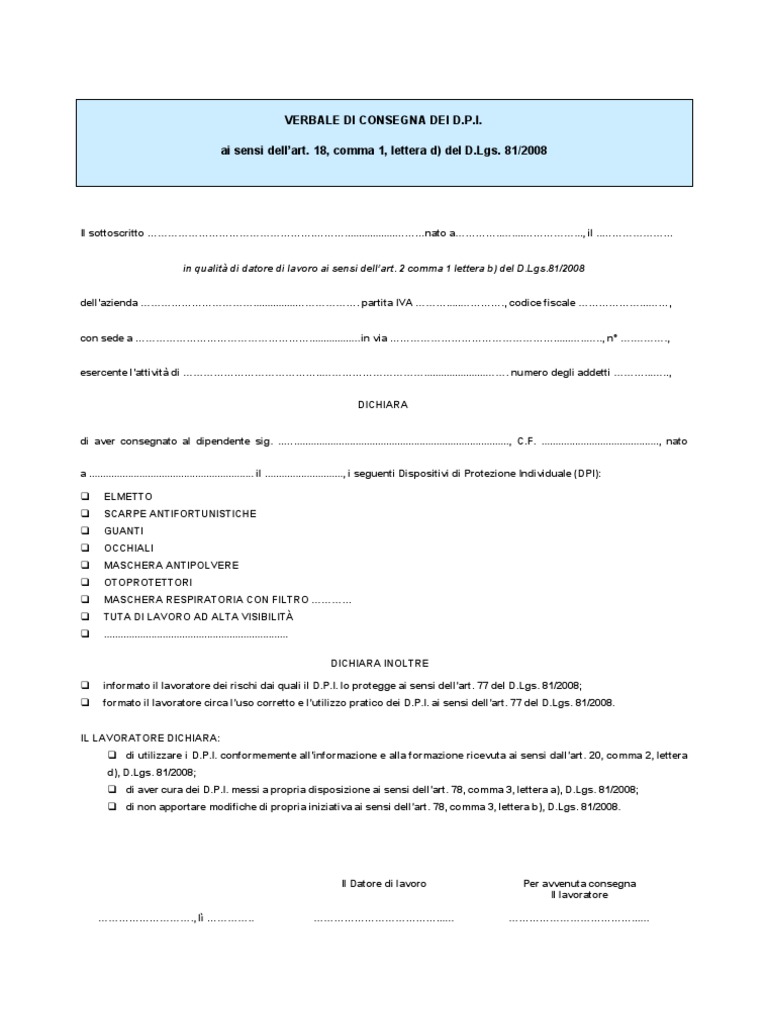 Modulo di Consegna dei DPI ai Dipendenti - Corsi Sicurezza Qualora tali dispositivi di protezione individuale presentassero difetti di varia natura, o comportassero qualsiasi disturbo fisico od. MD84 Modulo consegna dotazioni - Codess Sociale LUOGO o UFFICIO di. RICONSEGNA. 1. 2. 3. 4. 5. 6. Si fa presente che in caso di danneggiamento o di smarrimento si dovrà corrispondere.